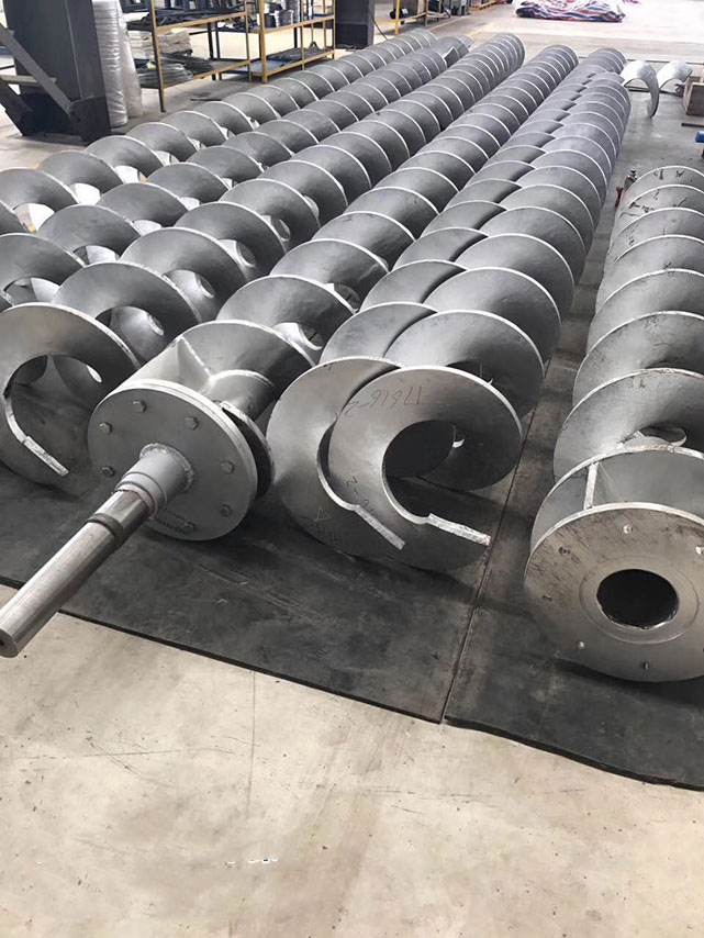4、扭距大、能耗低:由于螺旋无轴、物料不易堵塞,因而可以较低速度运转,平稳传动,降低能耗。